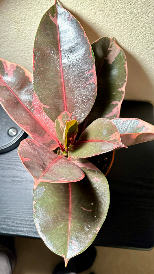 6" Potted Ficus elastica ‘Ruby’ - 2 Stems (Rubber Plant) Live Tropical House Plant
