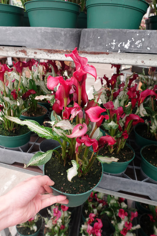 Calla Lily ‘Frozen Queen’ 6" – Icy White Blooms with Silvery Green Foliage for Garden & Vase