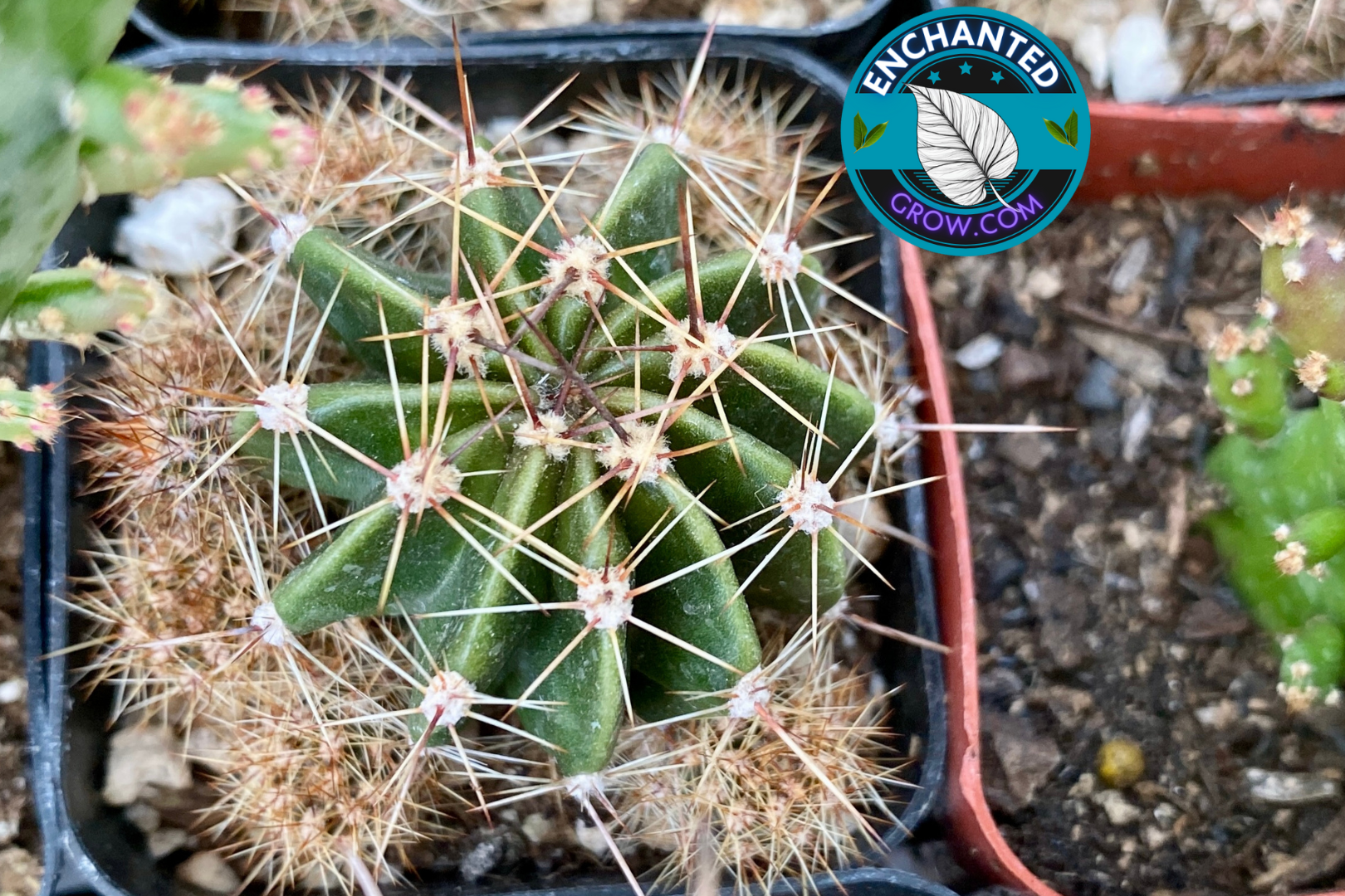 Discover the beauty of Mammillaria Zeilmanniana! This unique cactus boasts vibrant pink flowers atop its green, star-shaped stem. With minimal care, this plant is perfect for any indoor or outdoor space. A must-have for any cactus enthusiast, it's sure to add interest and color to your collection.